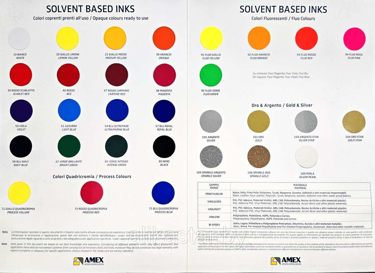VINILENE дает хорошие результаты при печати на различных материалах, таких как: твердые листы ПВХ, ударопрочные палочки из полистирола, используемые в косметической промышленности, бутылки из полиолефина. Благодаря легкости в обращении и быстрому высыханию эти серия красок особенно подходят для автоматических высокочастотных процессов печати.